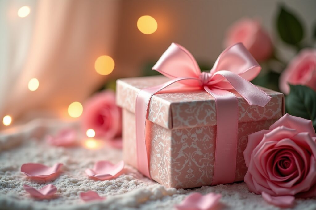 Verwende Seidenpapier, Bänder, Konfetti oder Trockenblumen, um die Geschenke liebevoll und kreativ zu verpacken. Eine schöne Schleife und ein persönlicher Anhänger runden das Gesamtbild ab.